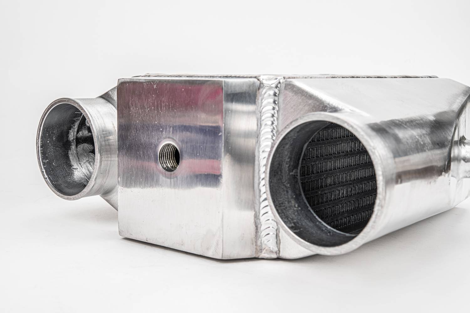 This Liquid/Air intercooler is built for massive boost. Special innovations in the core and end tanks allow it to operate at continuous pressure of up to 150 PSI.