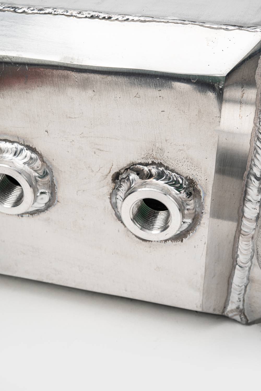 Note: The water inlet and outlet on most water/air intercoolers are BPT threads. BPT fittings are difficult to find in the United States, so ours all come with NPT threads.