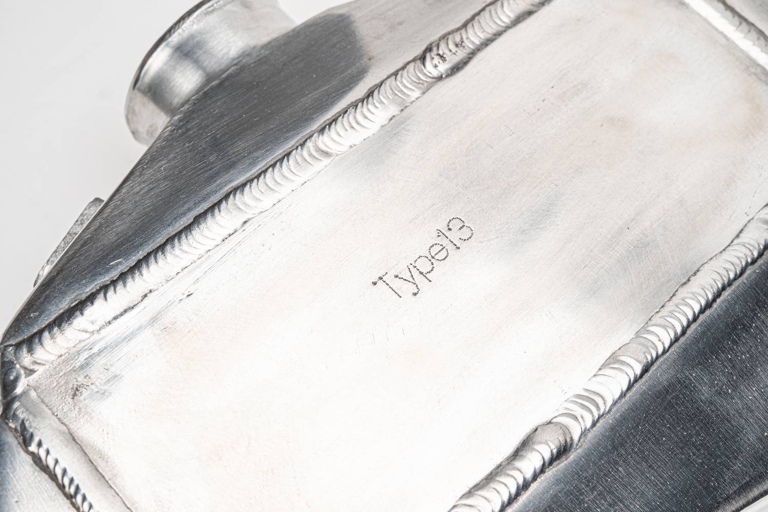 The inlet and outlet on this intercooler are located at a 90 degree angle for cramped installations.