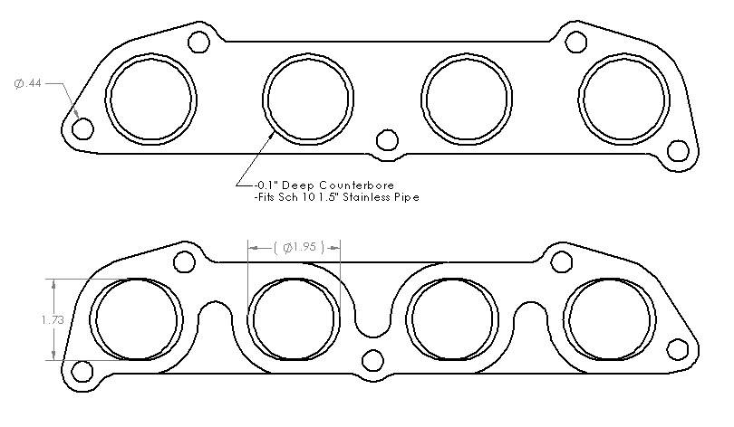 This head flange is for the Honda K-series. These high quality made in the USA flanges are 1/2 inch thick made from 1018 steel. They feature full 3D CNC porting ensuring a smooth transition from the port shape to the runner piping without the need for porting/crushing the piping. The face of the flange features a 0.1 inch recess to help concentrically locate the runners, perfect for 1-1/2 inch SCH10 manifolds.