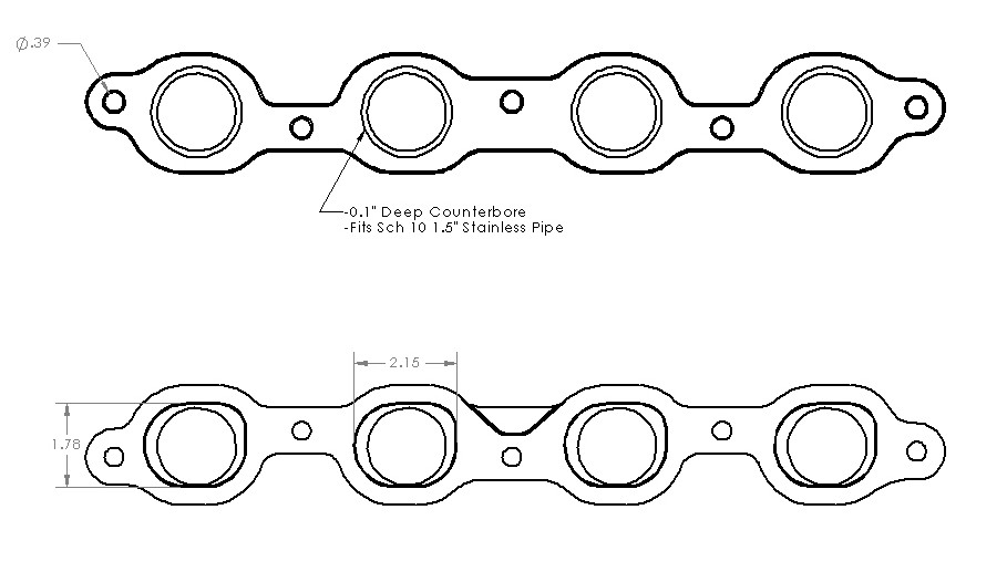This head flange is for the Generation V Chevrolet LT1, LT4, L83, and L8B engines. These high quality made in the USA flanges are 1/2 inch thick made from 1018 steel. They feature full 3D CNC porting ensuring a smooth transition from the port shape to the runner piping without the need for porting/crushing the piping. The face of the flange features a 0.1 inch recess to help concentrically locate the runners, perfect for 1-1/2 inch SCH10 manifolds.